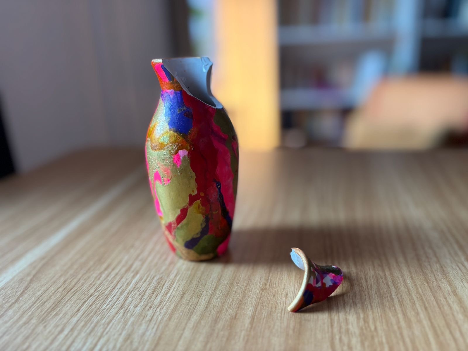 fiel plötzlich der wuchtige Rahmen auf diese Vase und zerbrach sie.