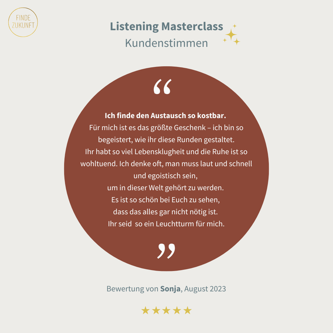 Wir haben eine Listening Masterclass entwickelt, mit der du deine Kommunikation und deine Beziehungen in deinem Umfeld durch wirkliches Zuhören verbessern kannst. Hier findest du etwas Material, warum Zuhören im beruflichen, wie auch im privaten Kontext von Bedeutung ist: